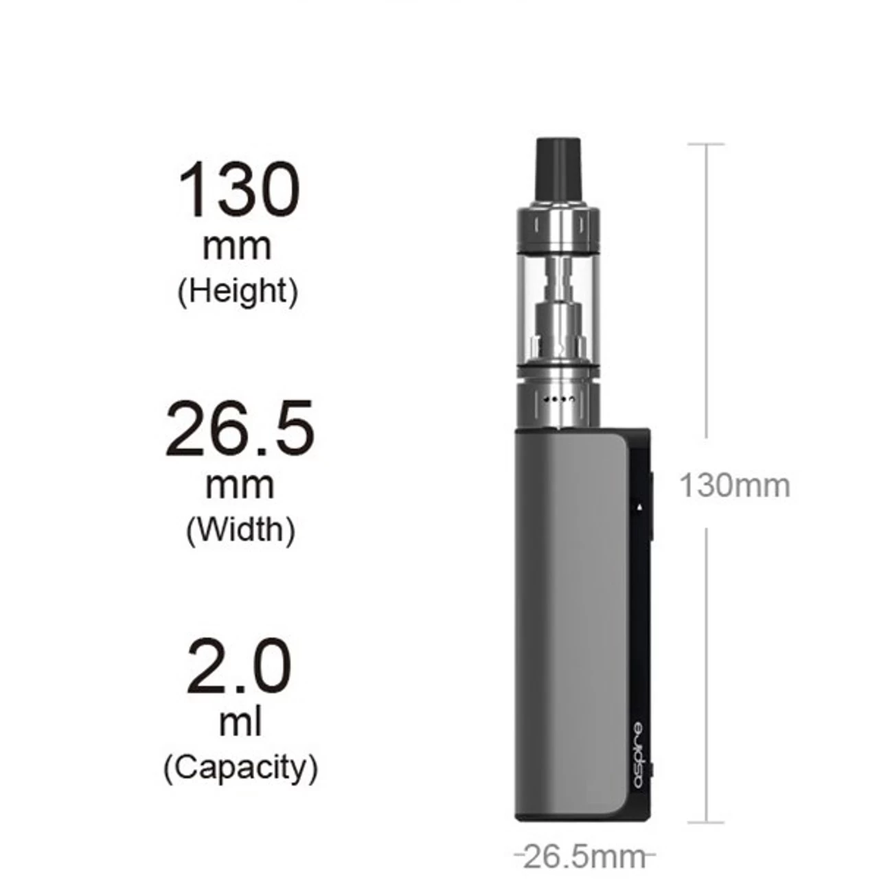 • Dimensions: 127.5mm x 26.5mm x 18mm with drip tip