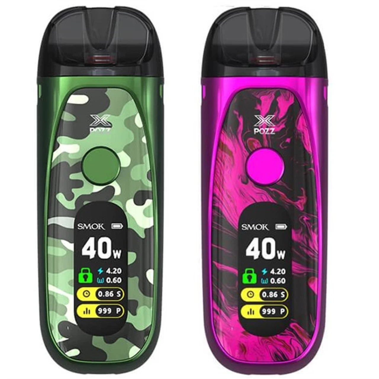 The Smok Pozz X Pod kits are available in 9 colours: Black, Black & White Camouflage, Blue, Gray & 7 Colour, Green Camouflage, Orange, Purple, White or yellow