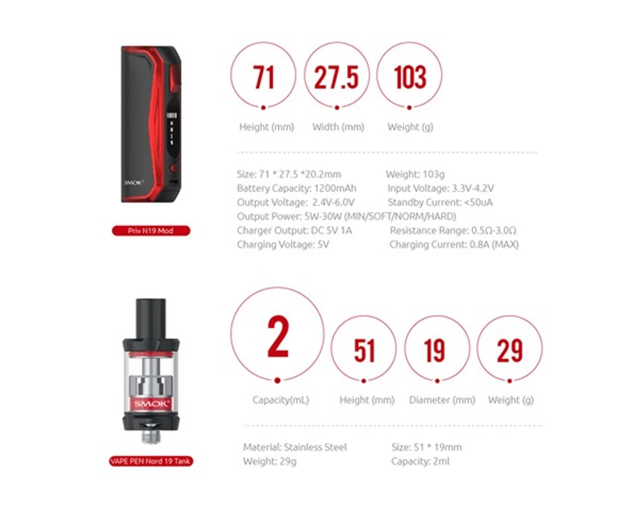 • 1 x SMOK Priv N19 Mod (1200mAh)