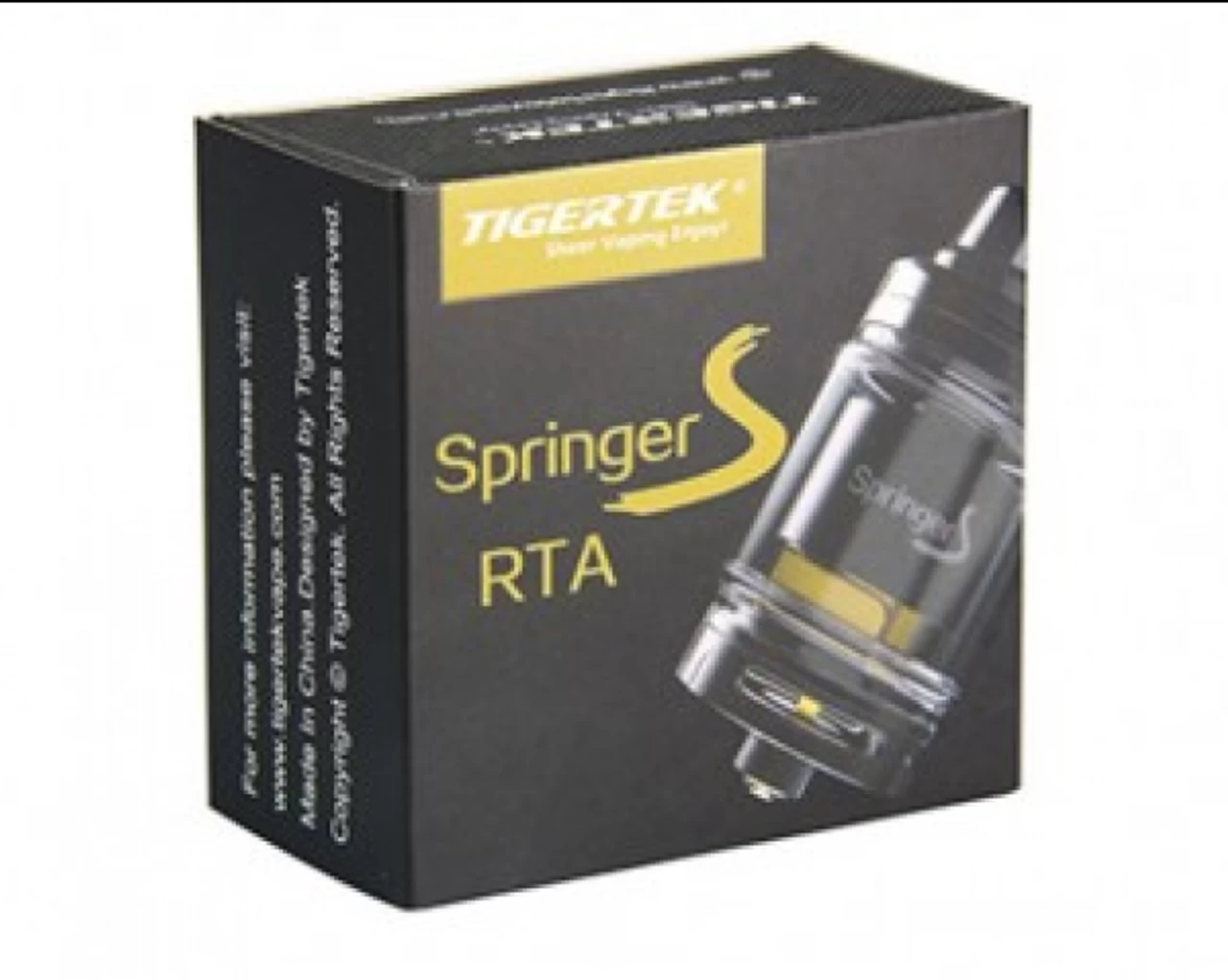 Order this single-coil, Tigertek Springer S RTA for economical, everyday vaping with supreme satisfaction. The Springer S features sprung, push-down coil connectors for rapid DIY building. The built-in 2ml tank is an added bonus – combining the superior flavour of rebuildable atomizer with the convenience of a deep e juice reservoir. This single coil RTA is cheap to run, and suitable for any mid to high-power mod with 24mm of tank space.