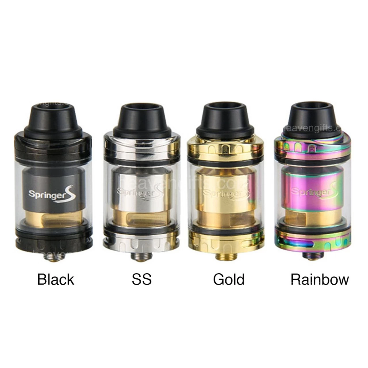 Currently, we stock Tigertek’s Springer S RTA in all four colour finishes. Order your Stainless Steel, Rainbow, Black or Gold rebuildable tank atomizer today!