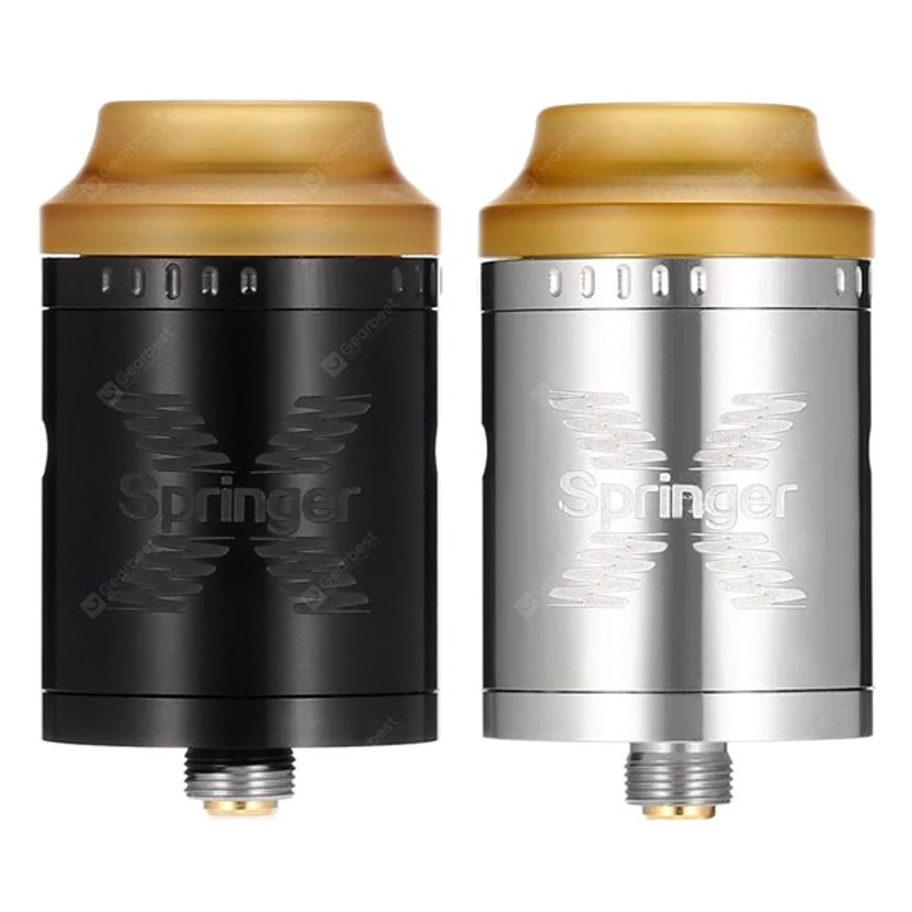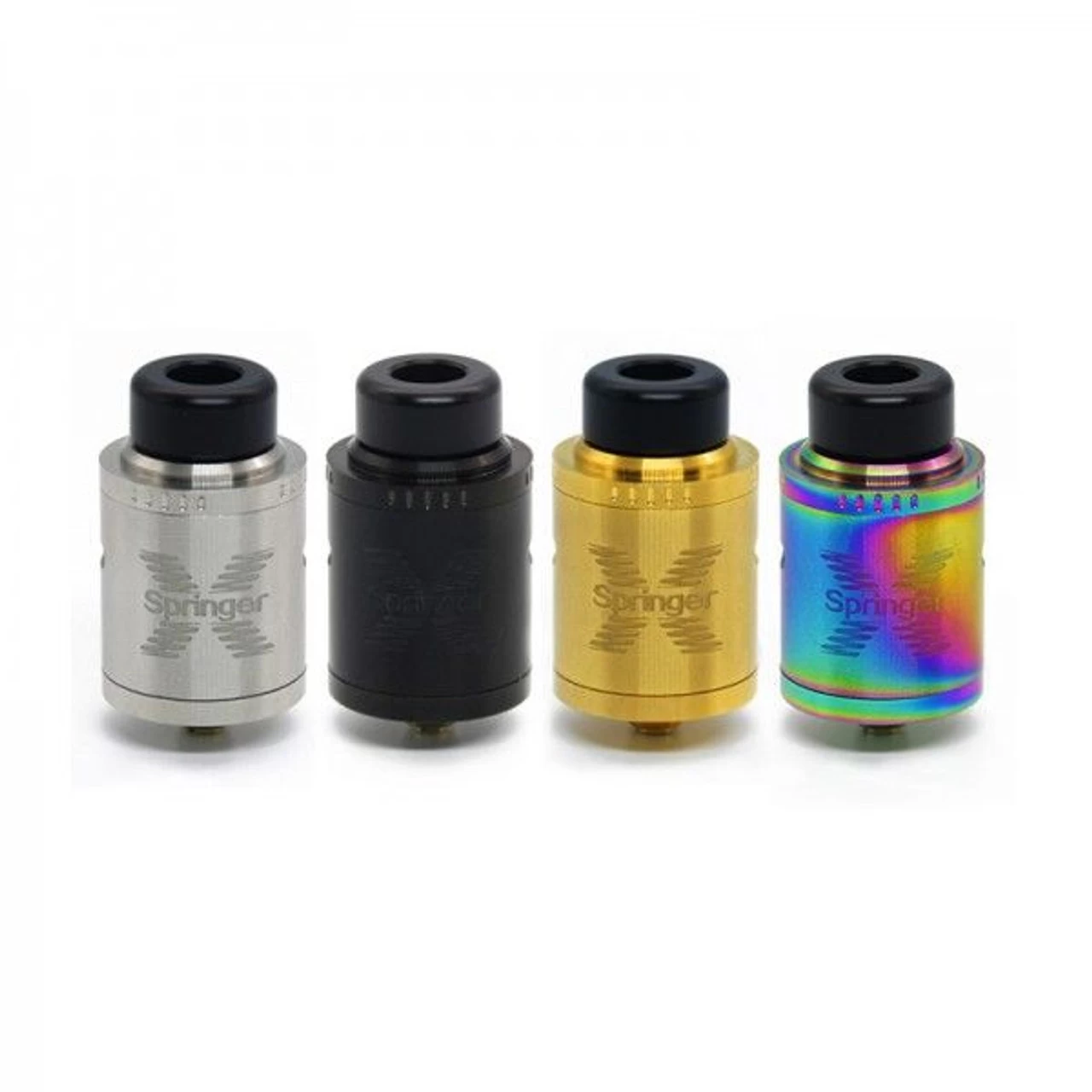 The 24mm diameter, Springer X RDA is designed for use with a wide range of 510 compatible mods. This is an advanced dripper that needs detailed knowledge of coil resistance, battery care, self-building and the related safety factors. Recommended for vapers with DIY coil building experience.