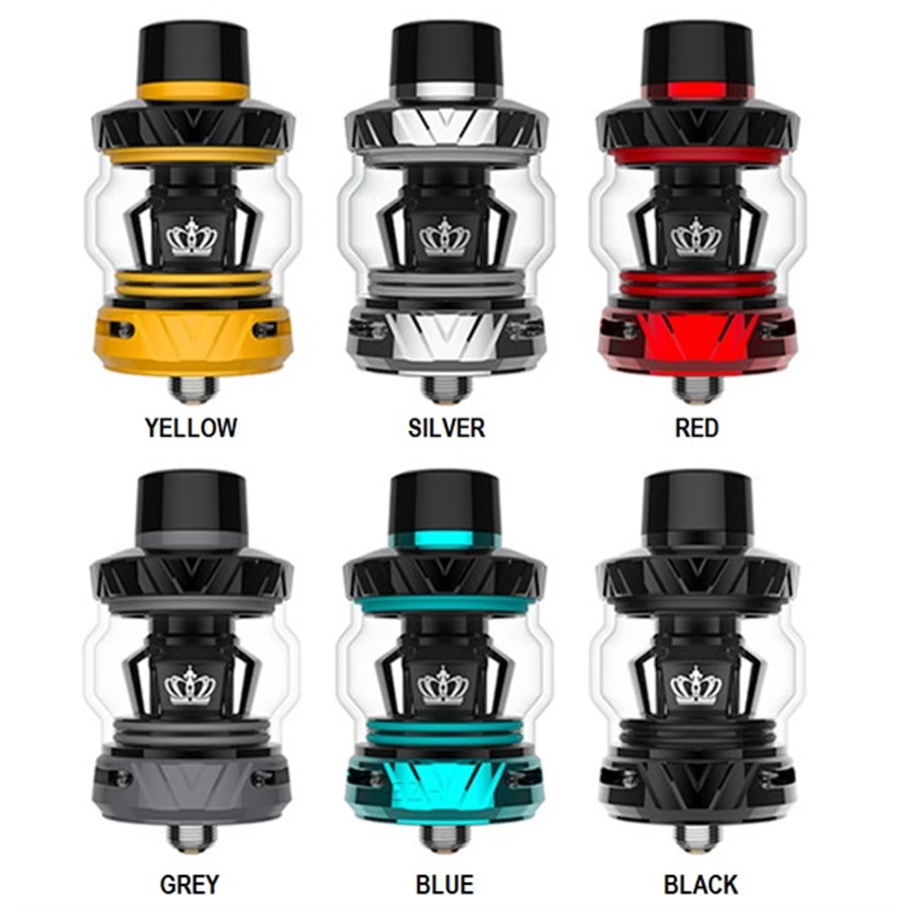 The Uwell Crown 5 Sub Ohm Tank is available in a range of amazing colours Black, Silver, Red, Yellow or Blue