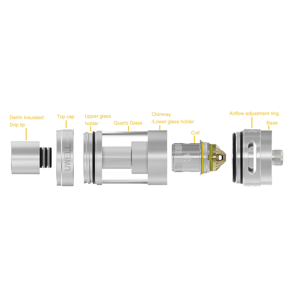 Wouldn’t it be great if Uwell could combine all the best features of their previous atomizers into one vaping supertank? Well, that’s just what they’ve done with the Uwell SE-1 Tank. This tall, 5ml capacity tank takes the sleek styling of the Rafale, opens-up the airflow and bundles the package with upgraded, bullet shaped Crown II coils.