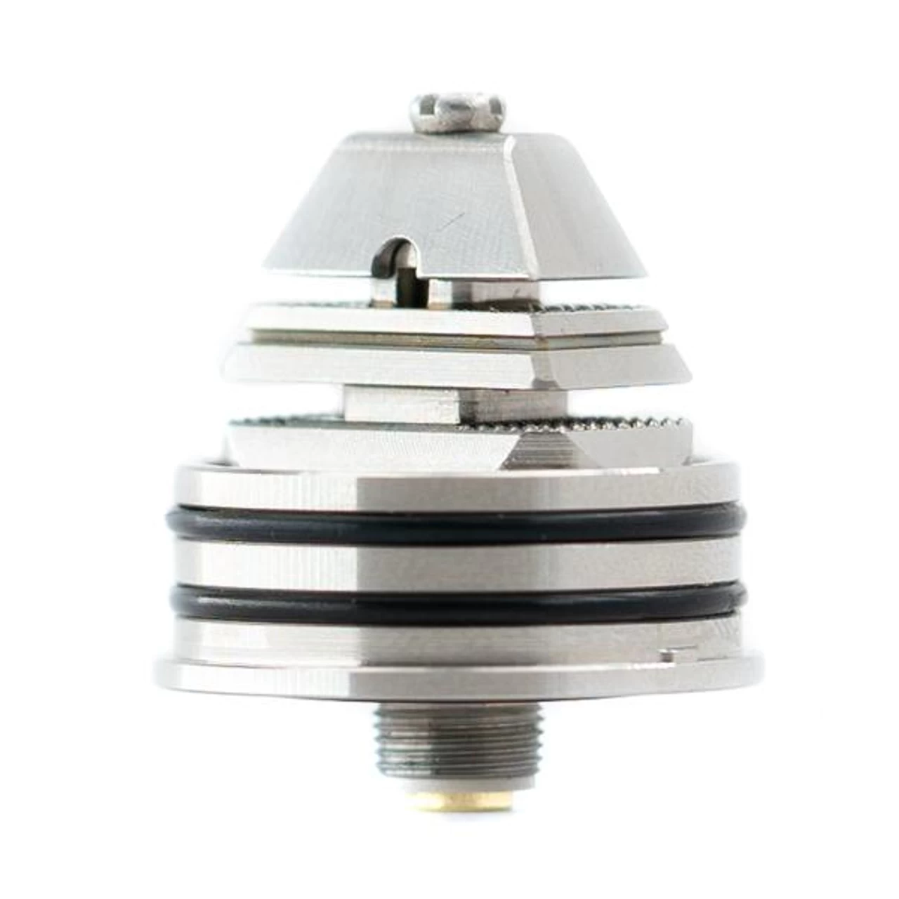 Where do we start to list the ‘first-of-its-kind’ features of this spectacular dripper? The Capstone RDA’s most striking feature is the pyramid clamp at the centre of the build deck. When you loosen the retaining screw at the top of the pyramid, it automatically expands to accommodate your coil wires. When you tighten the screw, the textured clamp surfaces firmly grip the wires. It’s incredibly easy to use. Like many RDAs, the Capstone dripper can be rigged for single or dual coil builds.