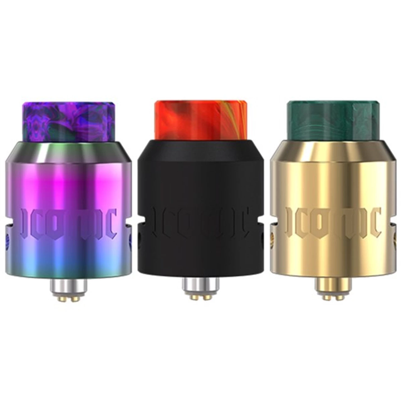 Vandy Vape Iconic RDA is the next revitalization updated version of the beloved Icon series. Integrating the impressive highly Dual coils design clamp posts systemin 24mm. It’s side and bottom tubes airflow system allow extra room in juice well and prevents risk of leaking. Along with resin drip tip pre-installed, and both delrin doc tip and frosted doc tip included in the package. Four colors versions available to choose, matches with different drip tips. Iconic RDA will satisfies any cloud chasers and let you taste flavors like never before!