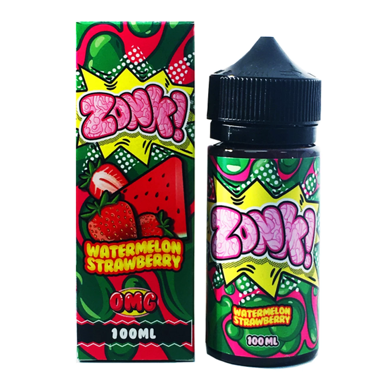 Watermelon Strawberry E Liquid 100ml Shortfill By Zonk e liquids is a exquisite watermelon, strawberry and bubble gum experience like none you have ever had. You may be wondering if you have a mouth full of fruity bubblegum shortly after one pull. Excellent with each passing inhale and exhale!